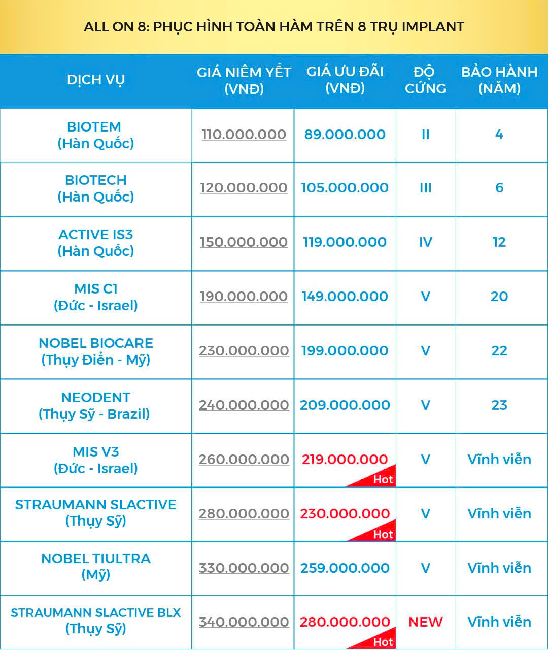 3. Bảng giá trồng răng Implant toàn hàm