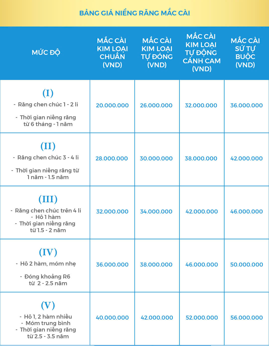 - Niềng răng mắc cài kim loại chỉ từ 10 triệu/hàm.