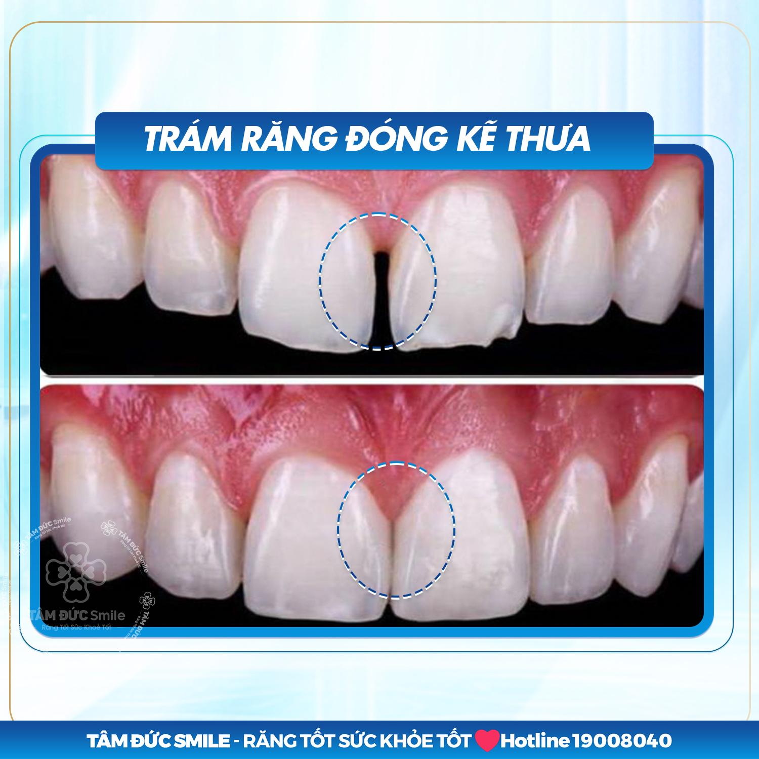 Nếu không muốn mài răng và bọc sứ, thì có thể chọn giải pháp Trám răng thẩm mỹ để có hàm răng đều đặn. Tuy nhiên, trong trường hợp răng thưa quá nhiều thì nên bọc sứ hoặc niềng răng thẩm mỹ vì miếng trám kẽ lớn rất dễ bị sút.