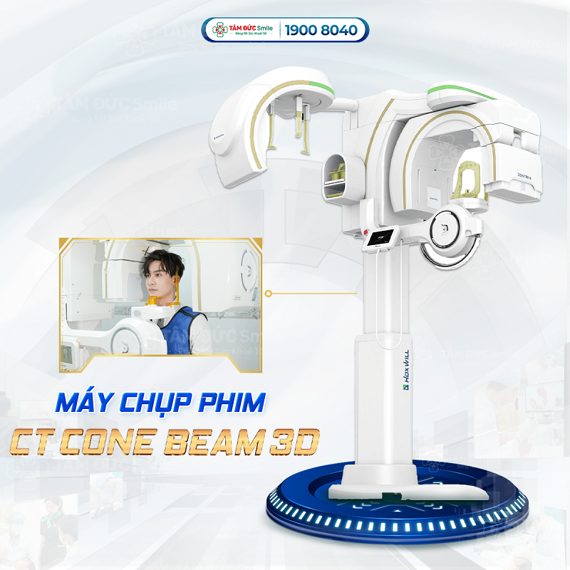 Hệ thống nha khoa Tâm Đức Smile trang bị hệ thống máy chụp phim CT Cone Beam 3D hiện đại. Đây là hệ thống X-Quang cho hình ảnh 3 chiều, giúp bác sĩ nắm được chính xác hình thái xương hàm và tình trạng răng hiện tại của Quý khách. Phim X-Quang được chụp bằng Máy CT Cone beam 3D còn cho thấy rõ mối liên hệ giữa răng hàm dưới với dây thần kinh, sự liên kết giữa răng hàm trên với xoang hàm, phát hiện được các sang chấn bên trong (nếu có).