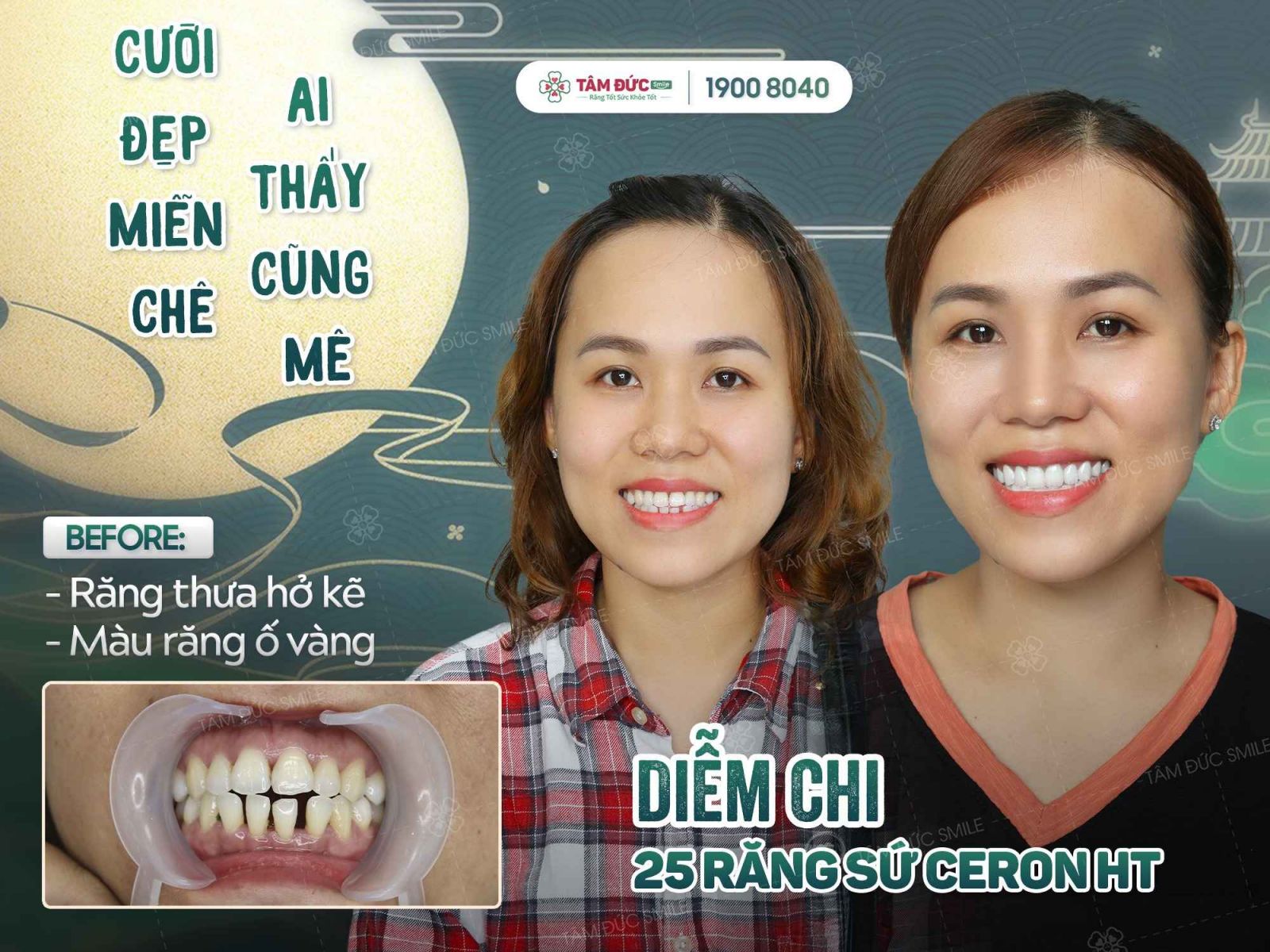 Chị Phương Khánh trước và sau khi bọc răng sứ Cercon HT